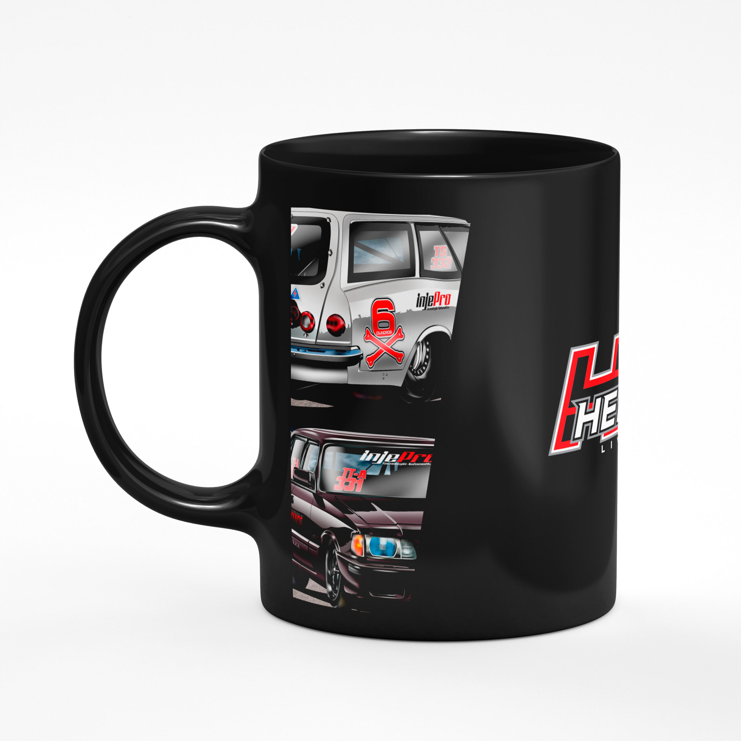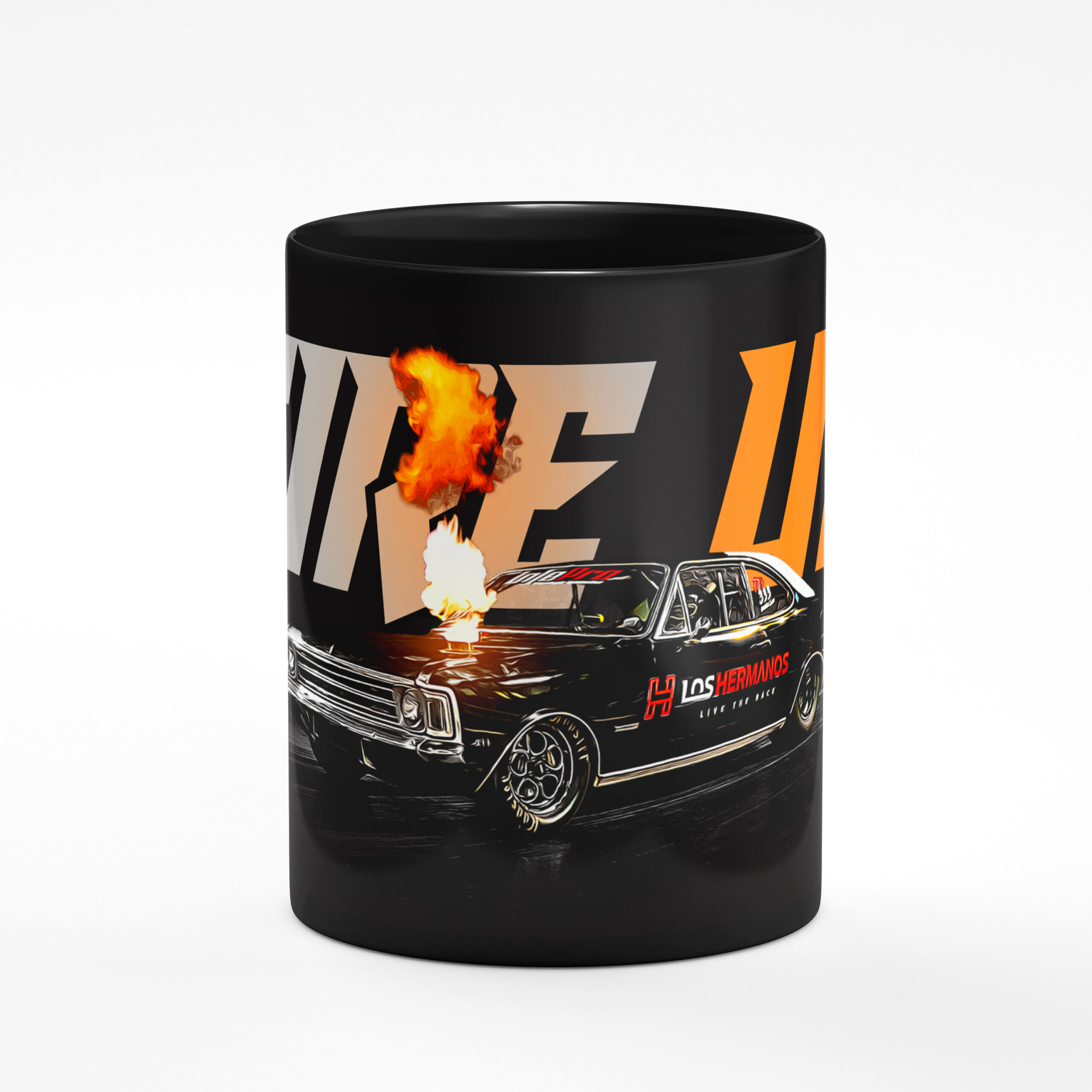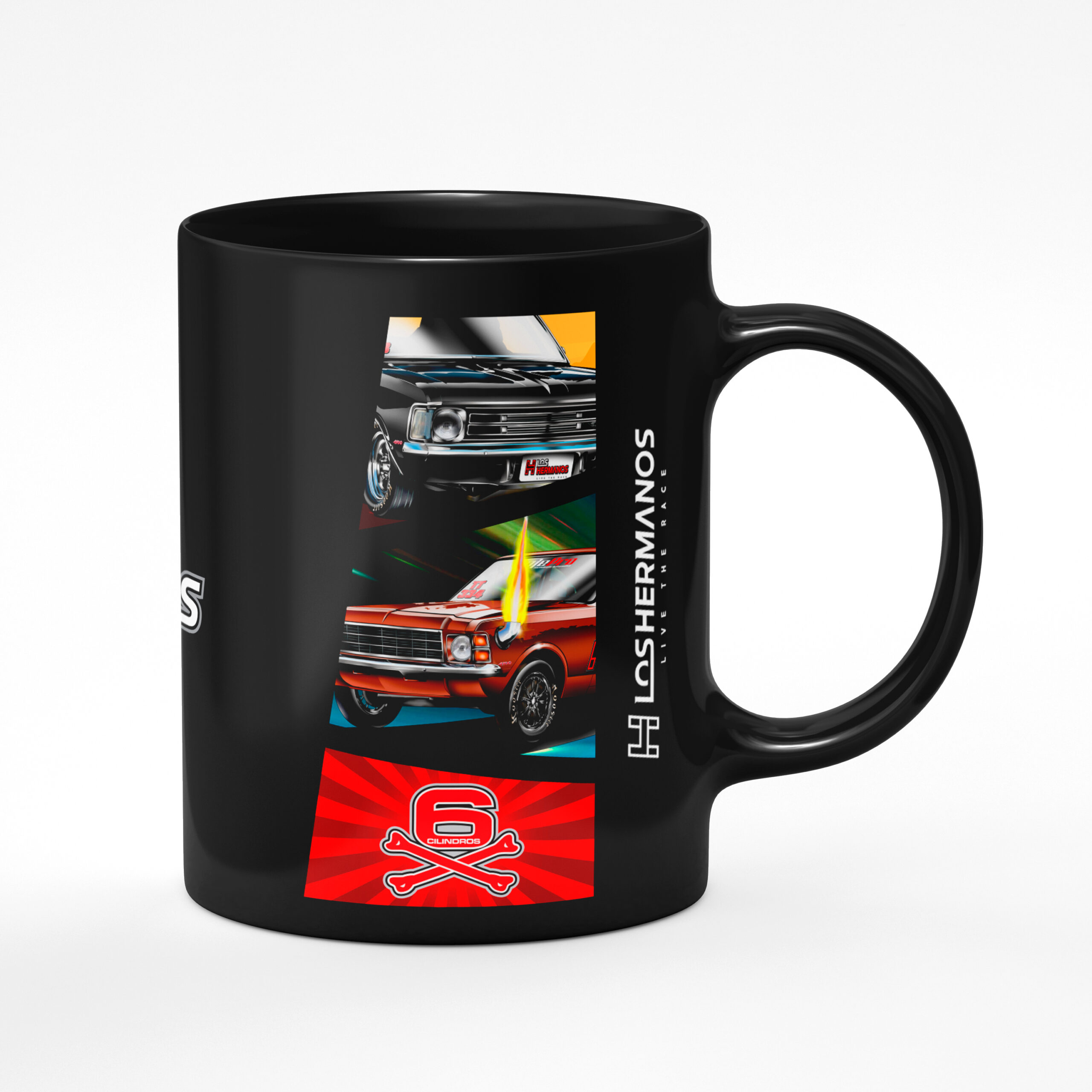 Caneca Oficial Colecionável Los Hermanos – Estampas “Fogo 6 Cilindros, Caravan 99% Nitrometano, Fire Up, XTM 331, Logo Los Hermanos “.