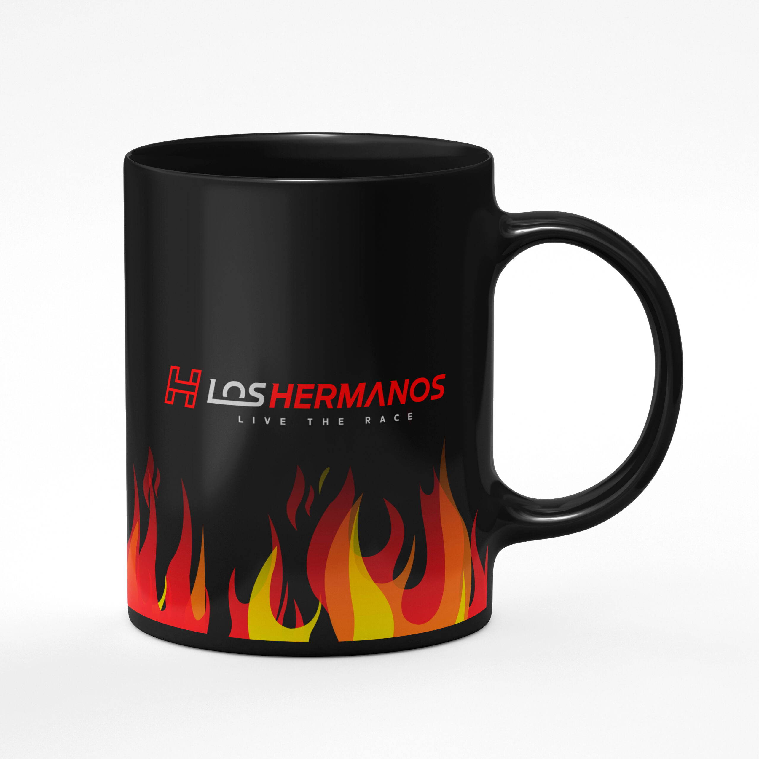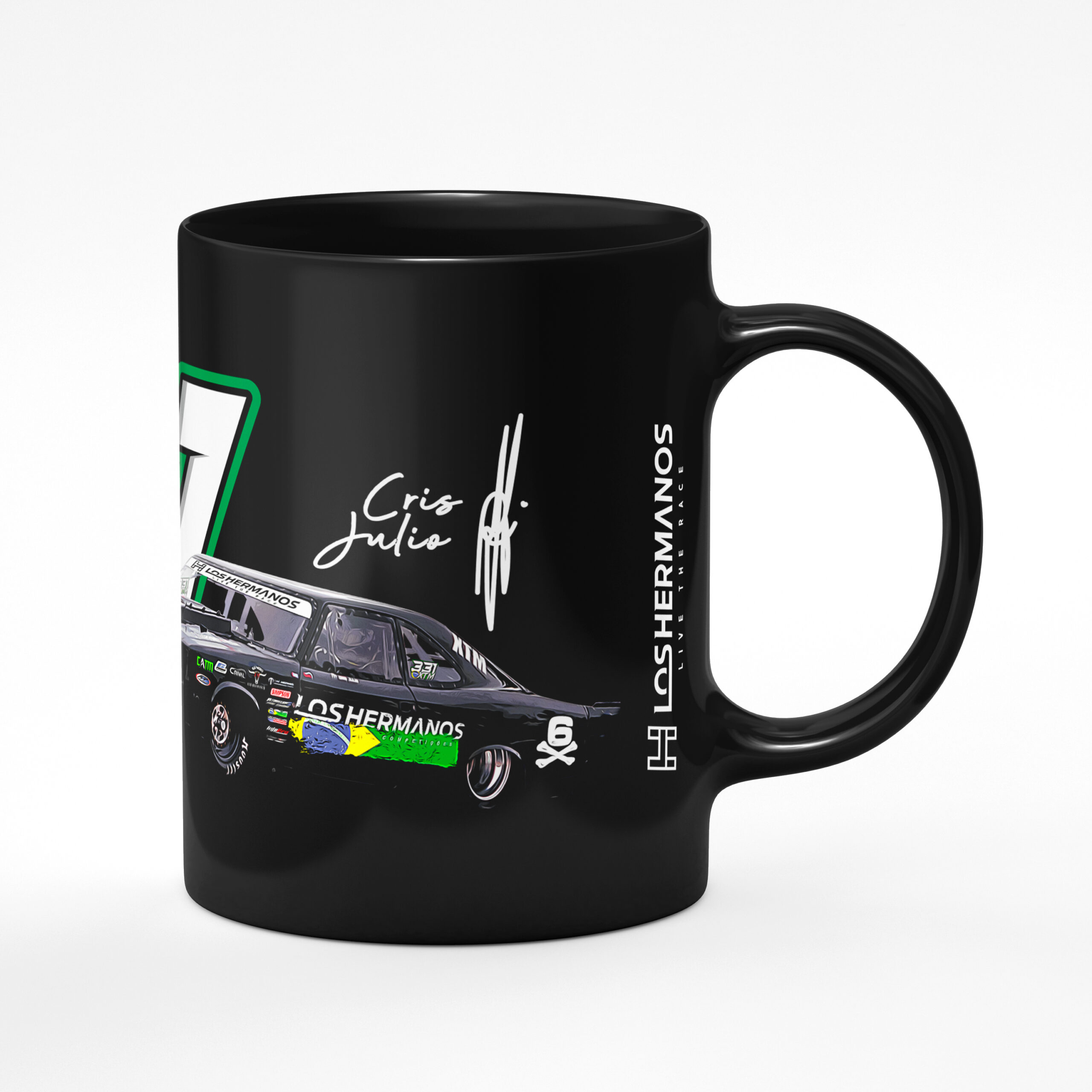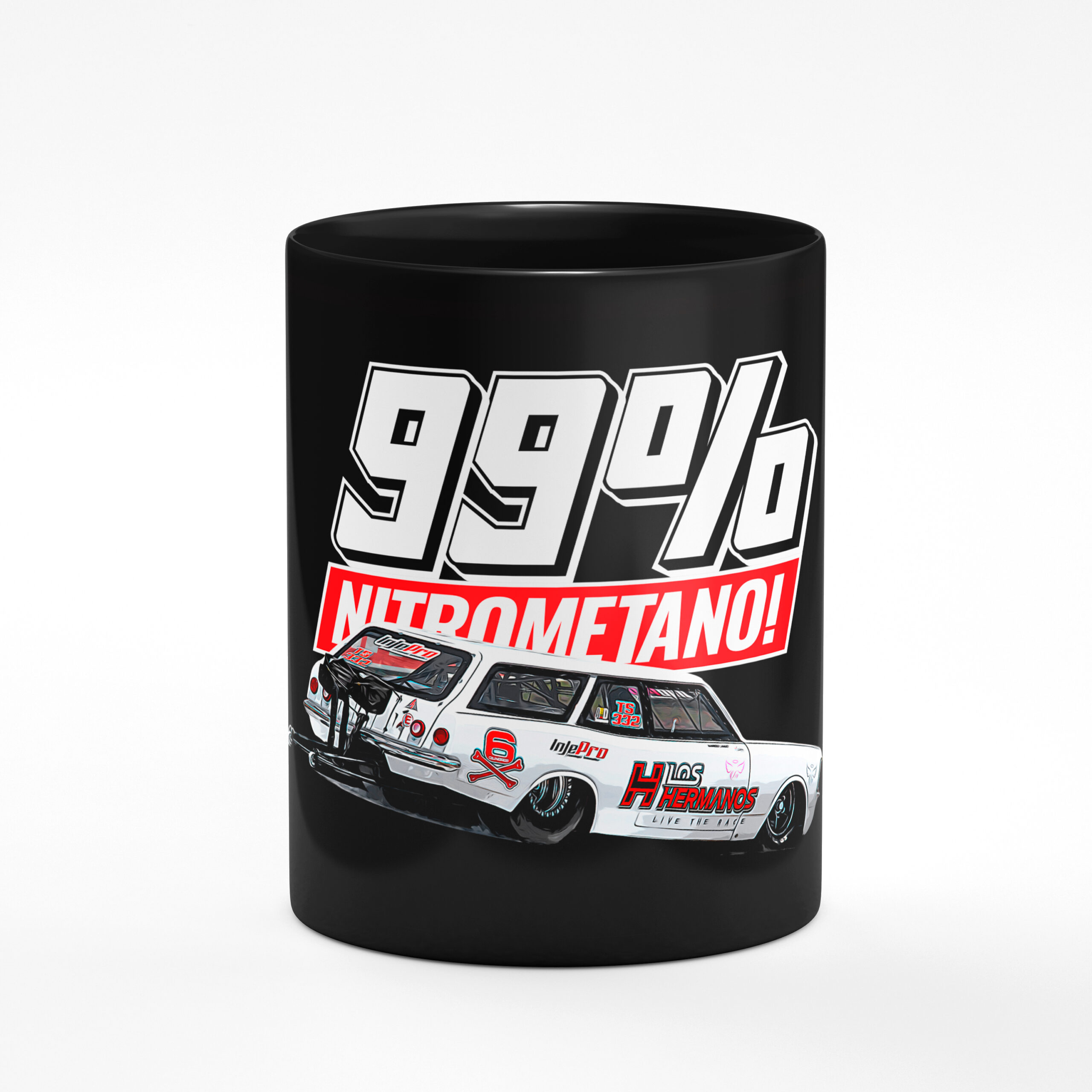 Caneca Oficial Colecionável Los Hermanos – Estampas “Fogo 6 Cilindros, Caravan 99% Nitrometano, Fire Up, XTM 331, Logo Los Hermanos “.